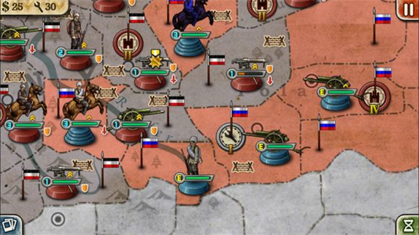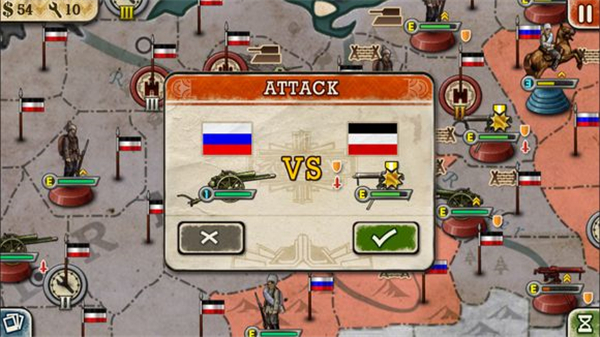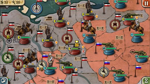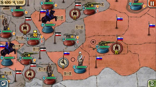 8、顺便提醒一下,这场战役如果想要俄国赢,千万不要随便拿现有的军队跟德国人硬碰硬。人家(德国)手中绝大部分都是一级两级的军队,配有各种突击防御战术,直接打无异于送死。首先必须要用优势兵力围攻才行,其次要充分利用好【战壕】减少德军的进攻次数,同时用好【补给线】回复部分受损严重的军队。再者,大炮永远都是硬道理,这是因为一方面大炮进攻时很多兵种是没有办法反击的(坦克兵和有要塞炮的地方除外);另一方面,大炮的攻击力和耐久力很强,甚至可以在短的时间里升级并且自身回复部分血量
