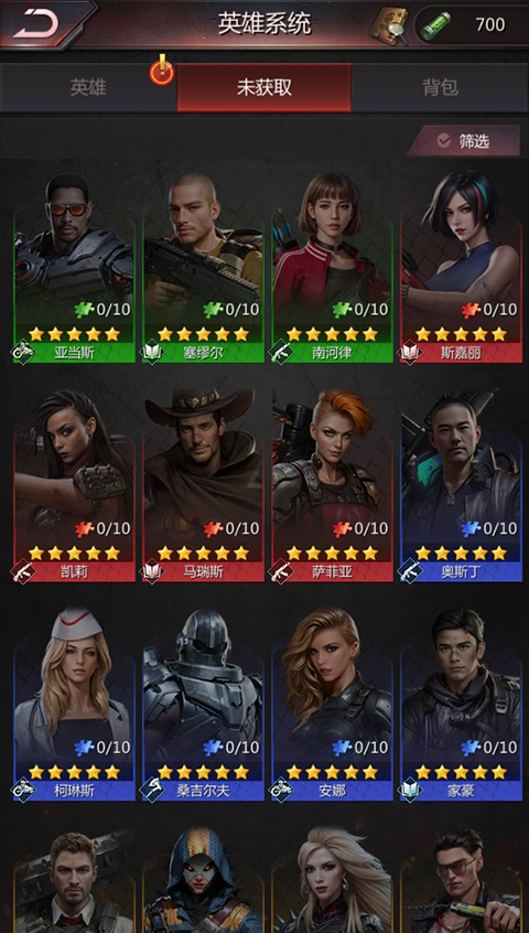 6、除了招募,玩家还可以通过英雄碎片进行合成,玩家在背包页面即可查看自己拥有的英雄碎片,达到数量时点击就能合成。