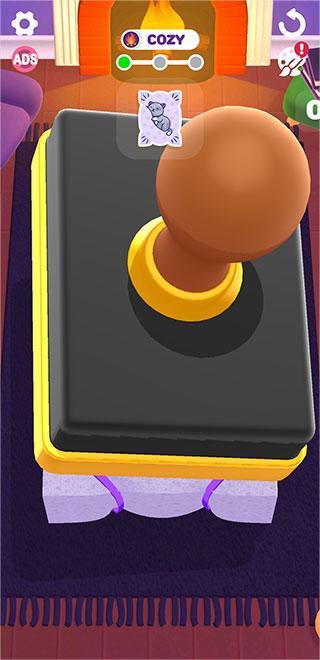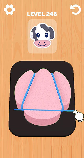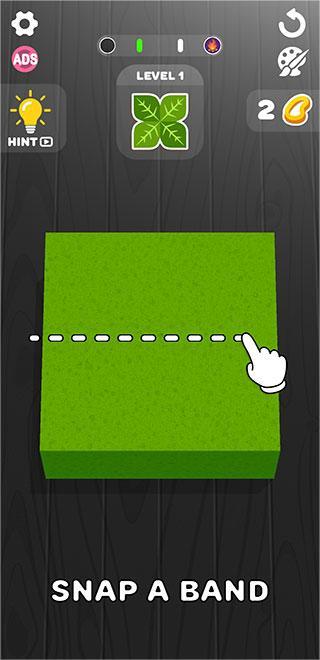 1、开局准备阶段,进入初始关卡,通过引导熟悉手指滑动挤压海绵的操作,明确 “复刻上方图案造型” 目标,了解橡皮筋捆绑与形状调整的基础规则。