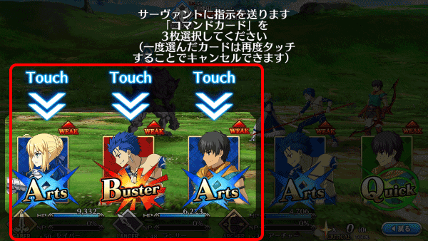 6、向服务发送指令,命令卡请选择3张选定的卡片,再次触摸,可取消。