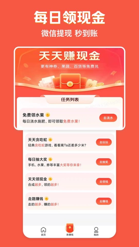 玩游戏看小说赚金币,更多免费领水果、拆红包赚金币等趣味玩法,让你轻松完成任务,快速获得金币奖励。
