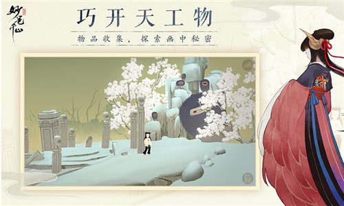 一修和尚与灵兽少年墨言前来求师学画,一个谦逊温润,一个天真烂漫。玩家将从二人的角度去探寻画道,寻求绘真,游戏关卡故事引用了《山海经》,《镜花缘》等古籍志异,独立成章的故事以主人公一修与墨言探寻画道而相连,环环相扣的谜题背后是感人至深的传奇故事。