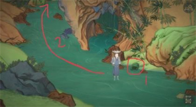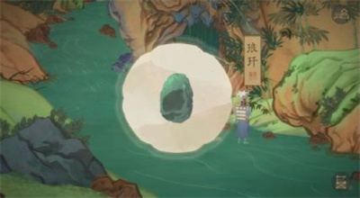 2.璆琳:到达上游后,先不要着急看墨言,画面左侧有个小石头,点击可获取璆琳。