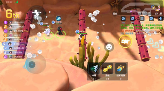 这是一个看脸(运气上的)的路段,说不定刚攒好皮卡捣弹冲锋用出来准备反超第一,直接来个恐龙怼你脸上,简单来说非常的高血压。传送门,护盾是首选。跳高,阻挡箱,滑板都可以跳过恐龙躲避伤害。如果想要配合皮卡,捣弹等载具走,配合气垫效果非常好。如果是在最后一圈,可以刻意呆在第二留一个巡航导弹,这样轻松反超。