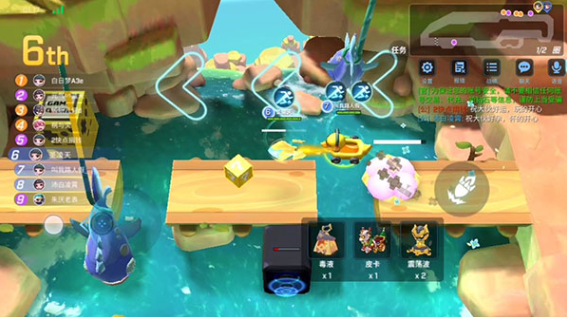 障碍类道具卡(阻挡箱,气垫等)在这段都可以悬空放置,红色区域摔落即死,所以是最搞心态的一段,同时也是最适合反超的一段,也考验游戏理解。首选翼龙,简单好操作,不过剑龙利用好技能能够比翼龙更快。其次是滑板,自走球,跳高,加速类道具,跳着走。如果你的技术比较好,也可以尝试用传送门和充气垫(没想到吧,气垫也行),捣弹皮卡什么的就算了吧,很难过这段的。