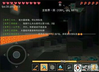 3、直到找到一个地下熔岩池(而不是表面的熔岩池,容易和在海平面生成的混淆),这表明你在正确的深度寻找钻石。