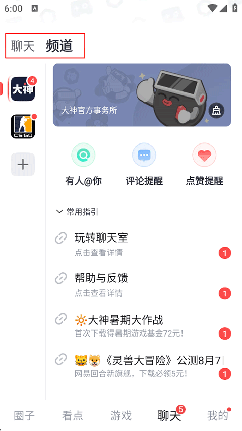 5、聊天:社区玩家交流互动,逛游戏频道等;
