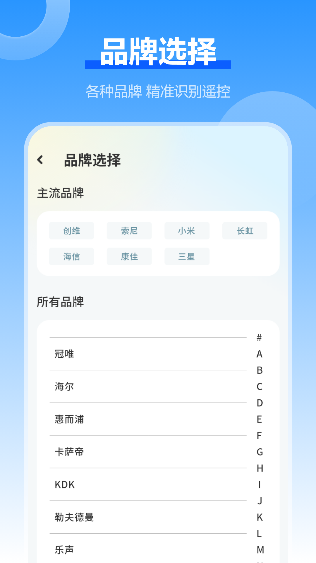 3、进入电视机品牌列表(包含创维、海信、三星、长虹、夏普、TCL等多个品牌,也可按照品牌首字母搜索),点击品牌。
