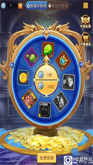 B、在普通许愿池每次进行许愿将获得10许愿积分,可以在许愿商店使用许愿积分换取高星英雄碎片
