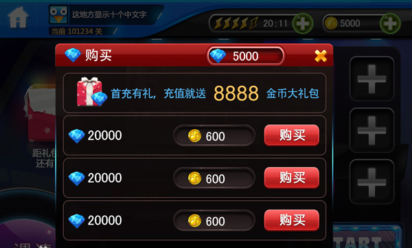 4、游戏中的闯关道具需要花费金币购买,举行活动时,闯关模式所有道具只售1金币。另外,在闯关开启宝箱的奖励配置中也加入了道具。另外,在闯关开启宝箱的奖励配置中也加入了道具。