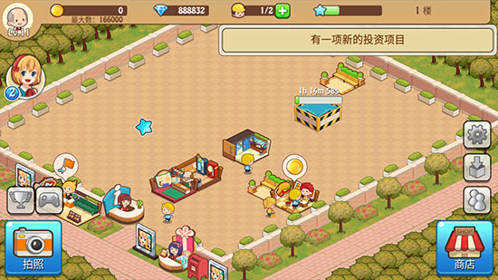 开心商店游戏是款二次元卡通q版的开店经营手机游戏,你将建设管理一家大型商场,不断升级打造建设更多门店以及设施,提升门店经营效率,雇佣更多的店员,打造属于你的超级商场!