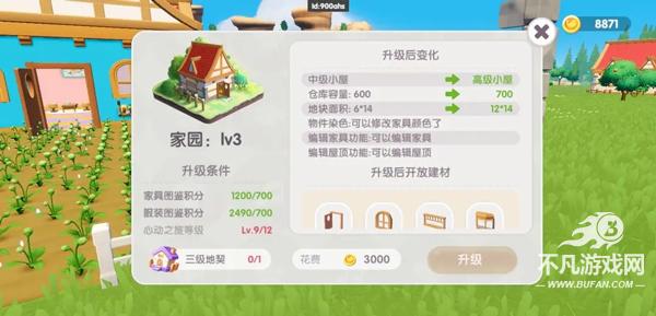 10、房屋升级二级后,靠近邮箱可以把房屋面积扩大,可以放更多的家具,种更多的植物,直接解锁装修功能。