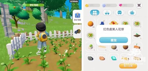 还有一个小技巧,通过建筑模式右上角物品摆放功能,切到花苞花芽栏可以看清楚花苞,而且放置时有名称,更加便捷。