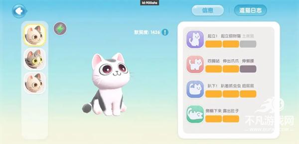 17、撸猫技巧,很多动作都是有前置动作的,看猫咪动作栏的图标或第一个动作,一排的都是有一定联系的。(如图灰色为下一个训练动伸懒腰需要在四脚站(图标或者第一个动作提示)的情况下完成)