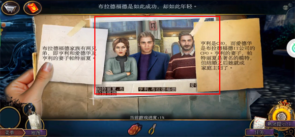 2、公文包里可以得到案件卷宗和尖头钳,记得先拿上。之后直接把案件卷宗交给边上的侦探,进入拼图游戏。拼图游戏点击单个碎片可以旋转,最后的结果如下图的两张完成图。