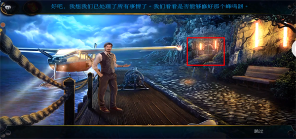 1、首先拿到下图红框里的浮标和绳子,然后对绿框的飞机使用绳子,点击飞机门,放大,进入得到公文包。