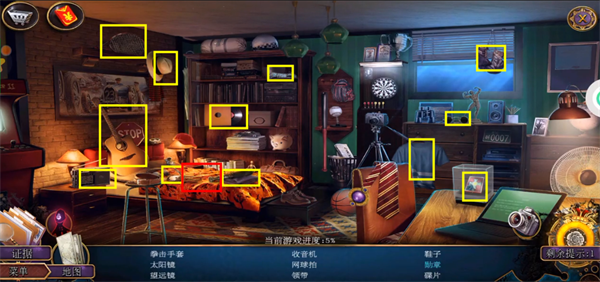 10、后院保安室正下方的门使用门禁卡(卡片)打开后进入,进入后直接完成小游戏,解法见下图,其中,红框要在黄框拿掉之后才能拿到。完成小游戏后可以得到勋章盒子,打开后首先查看里面的照片得到证据,之后点击中间的勋章得到勋章。