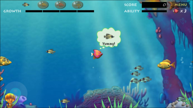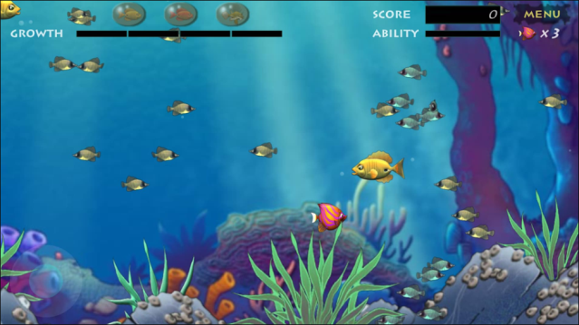 游戏的一代就已经很有创意了,说得通俗一点就是大鱼吃小鱼,几秒钟之前还追得你到处跑的鱼,在几秒种之后就反过来就被你追杀了~~~在二代中又加入了空中的小飞虫,传说中的“飞鱼”诞生了;