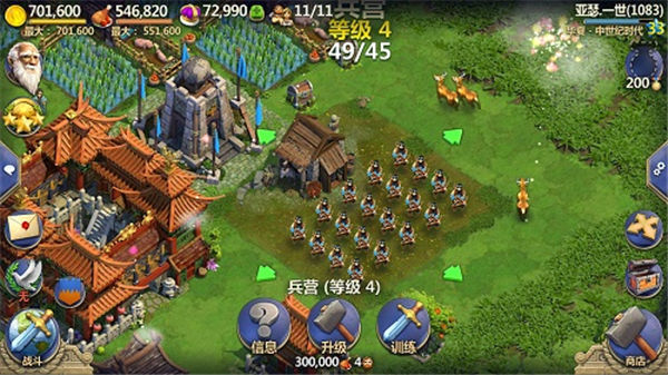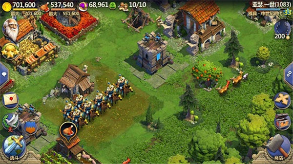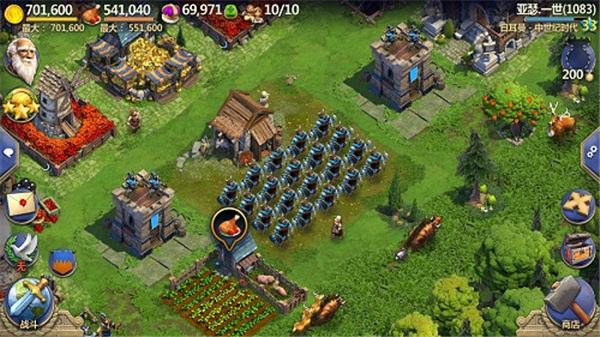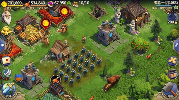 在领主发展文明的过程中还可以通过建筑城堡邀请史诗英雄助阵。拿破仑、埃及艳后、西楚霸王等文明领袖再次归来,率领诸葛弩兵、近卫骑士、花郎射手等特色兵种征服世界。在副本征伐、联机对战等多样战斗玩法之中,还需要考验各位领主对兵种搭配,战术布置,攻击指令等策略的选择。