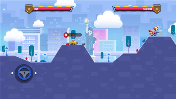 1、卡通风格画面,经典射击玩法,多种模式选择,驾驶战车对战。