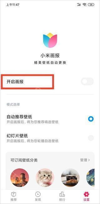 2、进入小米画报界面后,点击右下方“设置”;