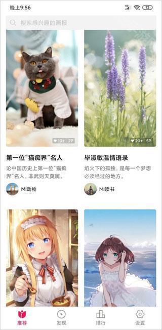 1、下载安装小米画报app,打开软件进入应用界面;