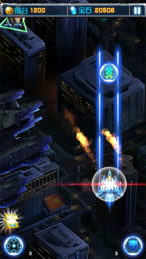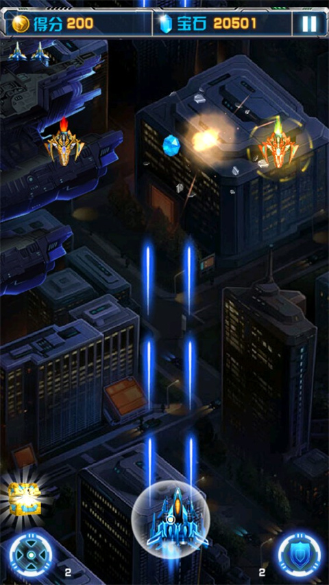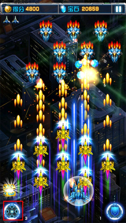 3、飞机大战之全民雷电丰富道具,帮你成为天空王者 在商城中可以购买种类丰富的辅助道具,被击毁的敌机也有概率掉落不同效果的随机道具;