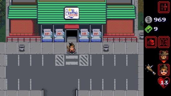 基本玩法就是动作加解谜,一开始操作那个胡子牛仔在大楼里探索,满血时的攻击有特技,比如牛仔是疾冲拳。