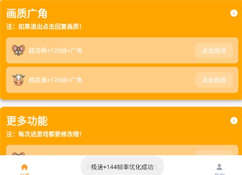 1、进入应用选择游戏后,点击画质模式下的极速画质