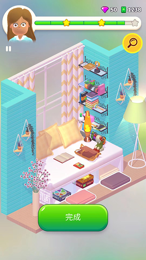 4、设有评分机制根据装修成果和风格品味给予评分,可以通过提升评分获得钻石奖励,体验玩法很有趣。