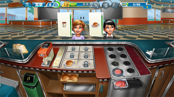随着玩家不断解锁关卡,会得到更多新的食材和道具,也会越来越手忙脚乱。这里小编有一个小技巧分享给大家,很多客人会选择点套餐,而套餐中只要上了一个食物就可以增加顾客的等待时间,因此可以常备一些饮品,用于增加顾客的等待时间。