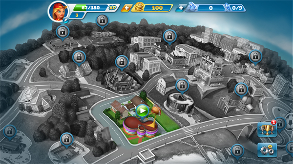 进入游戏后首先选择一个店铺的地点,店铺的地点需要慢慢解锁,新玩家只能够选择第一个位置。进入后可以看到一些关于餐厅的介绍,玩家需要选择关卡,每个餐厅有几十个关卡。进入关卡后游戏才真正的开始。游戏有两个场景可以进行切换,这也是其不同于其他的实操类烹饪游戏的一大特色。一个是厨房内部,一个是餐厅内部。厨房内部是用来进行盈利的部分,也是玩家需要实操的部分;餐厅内部的作用则是为顾客提供良好的环境从而增加其等待时间,在利益上的话可以得到更多的小费。
