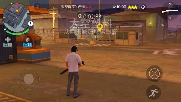 3.竞业静止协议(E先生).A级任务 图2出生点,开车前往目的地,剧情过后来到图3位置,走右边的楼梯上去,看到前面有个背对着你的jc(图4)直接上去背刺秒杀,然后站在图5位置将剩余敌人清理掉,清理完后马上向高台(图7)跑,可以走图6的捷径,直接翻上去,走到高台的黄圈后立马跳下来(图8),冲到黄圈后就找地方躲起来,等剧情后来到图9,驾车前往目的地。 这个任务的技巧在于图6有一个可利用的捷径点,还有上到高台后有几秒的黄金时间不会刷出敌人,趁这段时间直接冲向图8的黄圈。 本关的时间很紧张,因为大多数花在了跑路上,做好我说的细节三星很容易