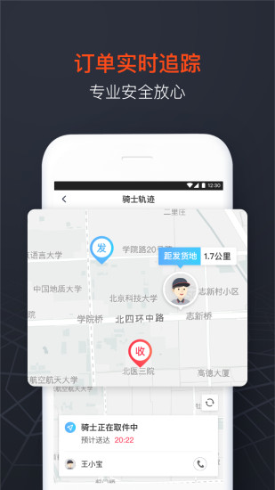 3.专业化的快递行业,积累丰富配送经验,结合高效的同城配送智能调度系统,帮助快递员即时响应同城订单号召。