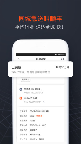 顺丰同城急送是一款最近很火热的生活实用APP,一键操作快速配送,由顺丰全职员工配送,为用户提供了高效便捷的配送服务,专业的骑手进行配送,工作时间灵活,它是同城范围内分钟-小时的倍增,为您的生活提供更多便利体验,我们一起来看一下顺丰同城急送的软件内容。