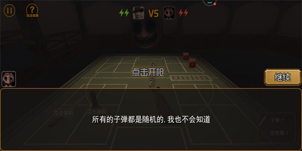 开枪思路:第一枪的局面五五开,这里还是建议第一枪对自己,若是空弹还能继续开枪,下一枪就对着恶魔(三分之二概率实弹)