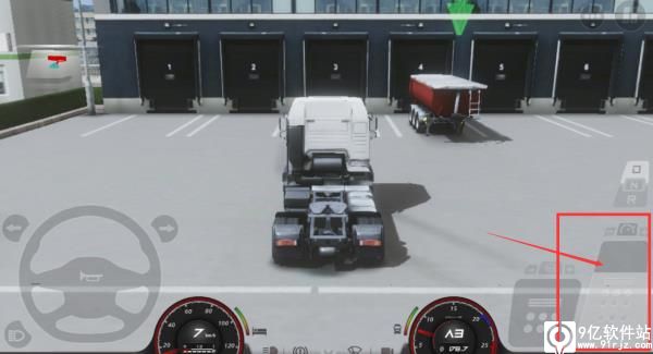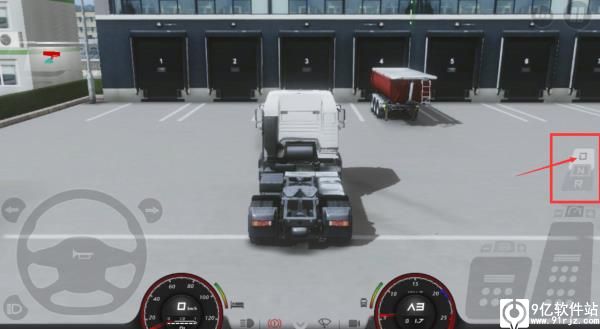 2、点击右上角菜单,点击左侧钥匙图标启动卡车,即可开始按踏板操作,坐标为方向盘,右侧为刹车和油门,油门上方为前进和倒挡