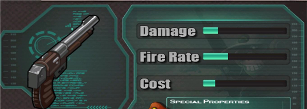 游戏共有三类共20多种武器选择:近战,手枪和机枪。特殊武器具有燃烧和冻结等效果,以及子弹特性(例如暴击和穿透)。所有武器还具有升级,零件收集和后续增强版开放系统等功能。