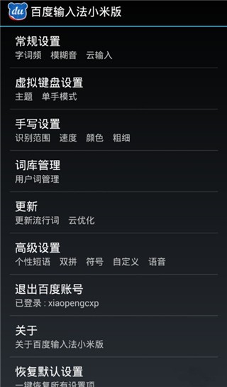 百度输入法小米版说明