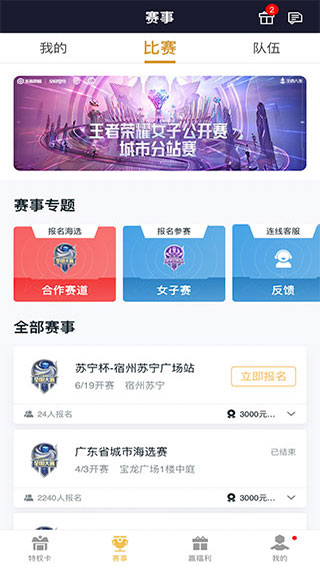 2、同当然你也可以进行报名参赛,玩王者领身边的商家优惠券,与其他玩家进行赛事pk,