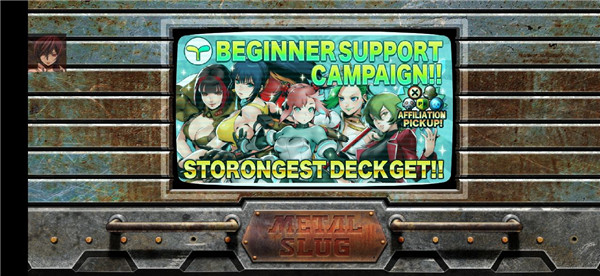 这个就是出战界面,上方分别是deck卡组编辑、deck选择。下面的10格是显示当前deck的单位配置,在十个单位后面的这个是支援系统,点击后出现三种分别是爆车攻击(和合金弹头正统作品里的载具自爆差不多)、医疗(场上所有友军单位恢复全部HP,所有友军单位建造CD清零)、填充(场上所有友军的特殊攻击准备立刻完成),玩家要根据自己的情况在开战前选择好,战斗中无法更换。