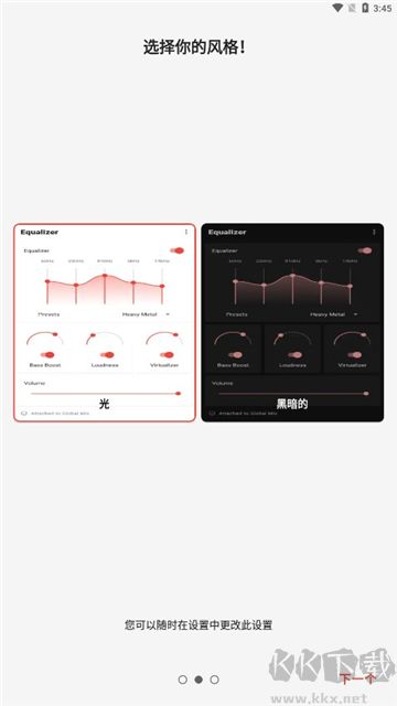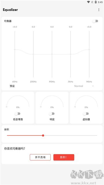 equalizer均衡器去广告版是一款功能非常强大的音频处理软件,能够支持用户在这里根据自己的喜好和听觉需求,自定义音频的频率响应,通过调整不同频段的音量轻松找到自己喜欢的音调,满足不同用户的视听需求,致力为用户带来更好的听觉体验,感兴趣的小伙伴就快来kk网站下载体验一下吧。