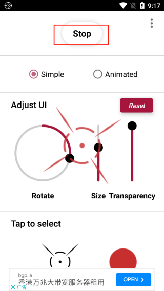 3、在tap to select可更换准星的外观以及颜色。