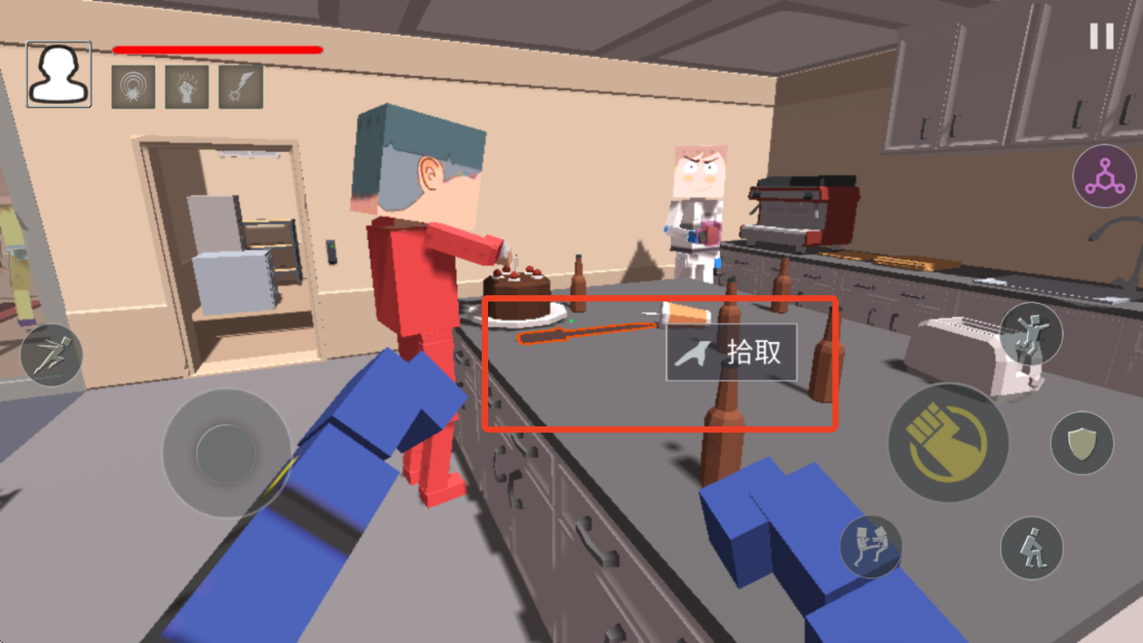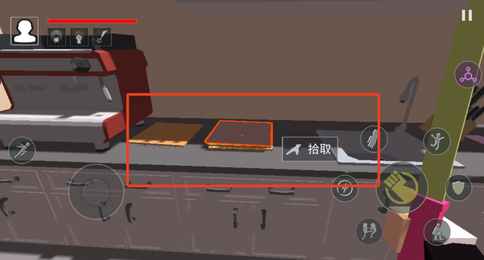 3、往前走,靠近这个桌子时就会出现可以拾取的选项,对应的物品就会有红色的描边。这把刀还是非常耐用的,推荐!