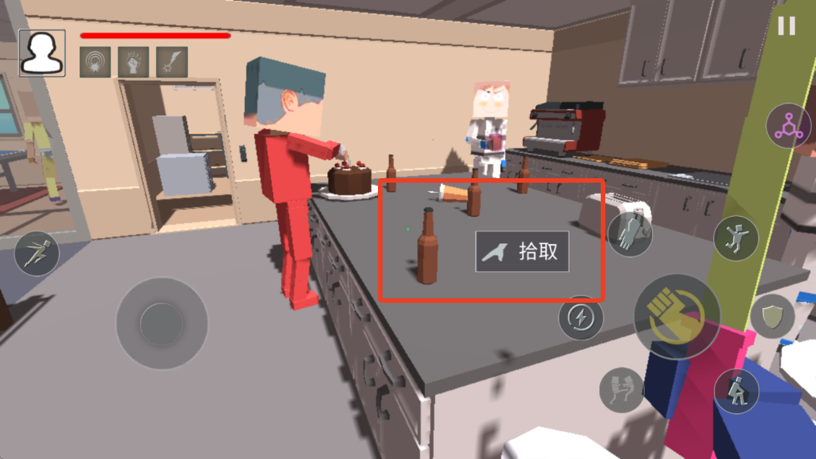 4、当你手上拿了其他的东西时,只要屏幕中心的绿点靠近了也能拿别的东西,像一些酒瓶、饮料瓶就会没有描边。