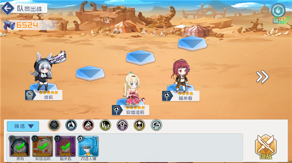 1、进入游戏前往章节进行挑战,搭配出战角色
