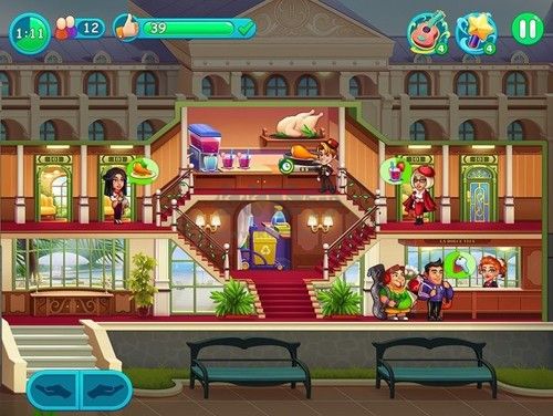 1、和你的团队一起,在这个繁华的城市里经营更多五星级酒店,像烹饪大师一样烹饪。2、这款高度上瘾的时间管理游戏将会带给您激情紧张的酒店体验。
