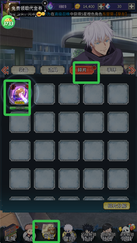 5、背包中的咒术师碎片可以合成一个咒术师。