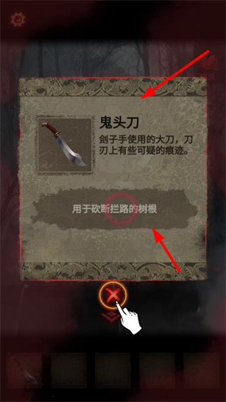 2、获取鬼头刀,它是刽子手使用的大刀,刀刃有可疑痕迹,可用于砍断拦路的树根。