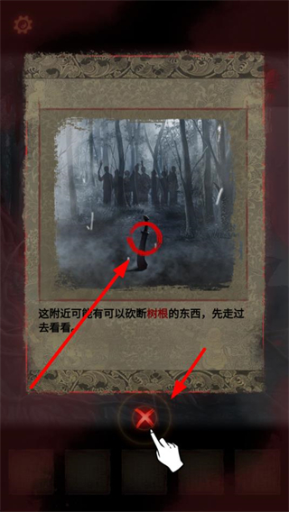 1、有可以砍断树根的东西,需走过去查看,寻找解谜道具,推进游戏下一步的进程。